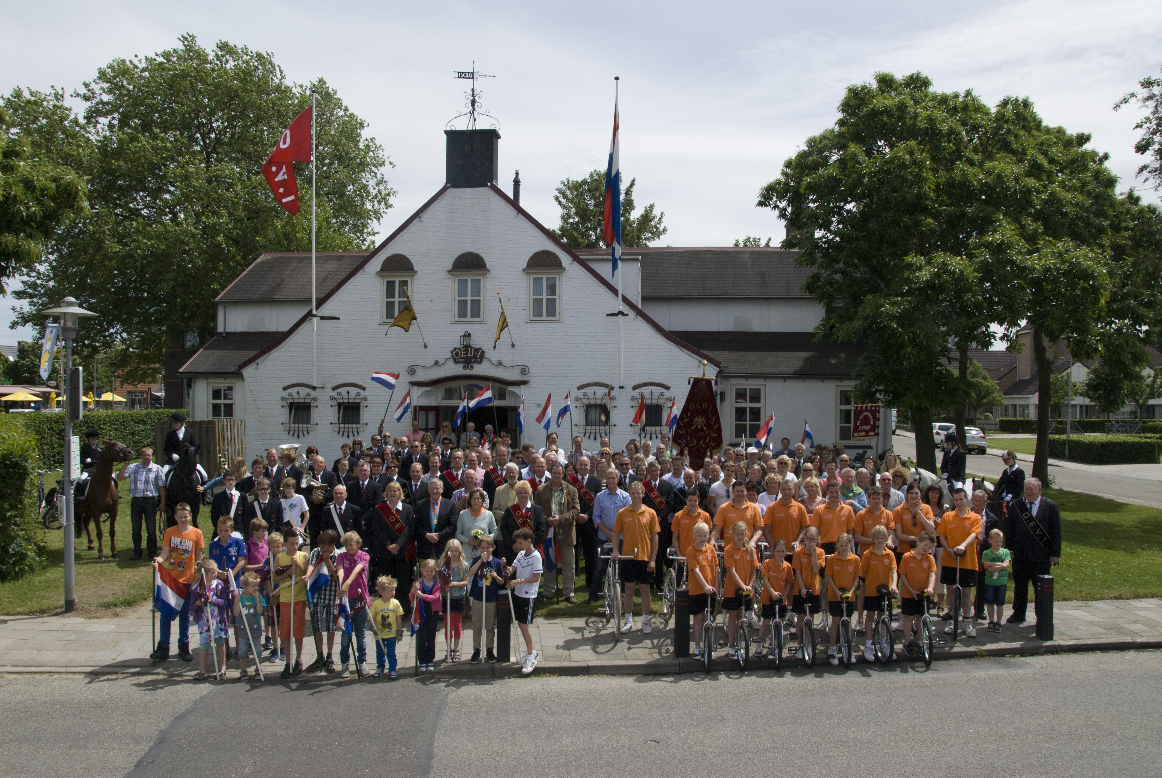 Samen met koningspaar Carlo en Monique en het voltallige bestuur langs het gasthuis