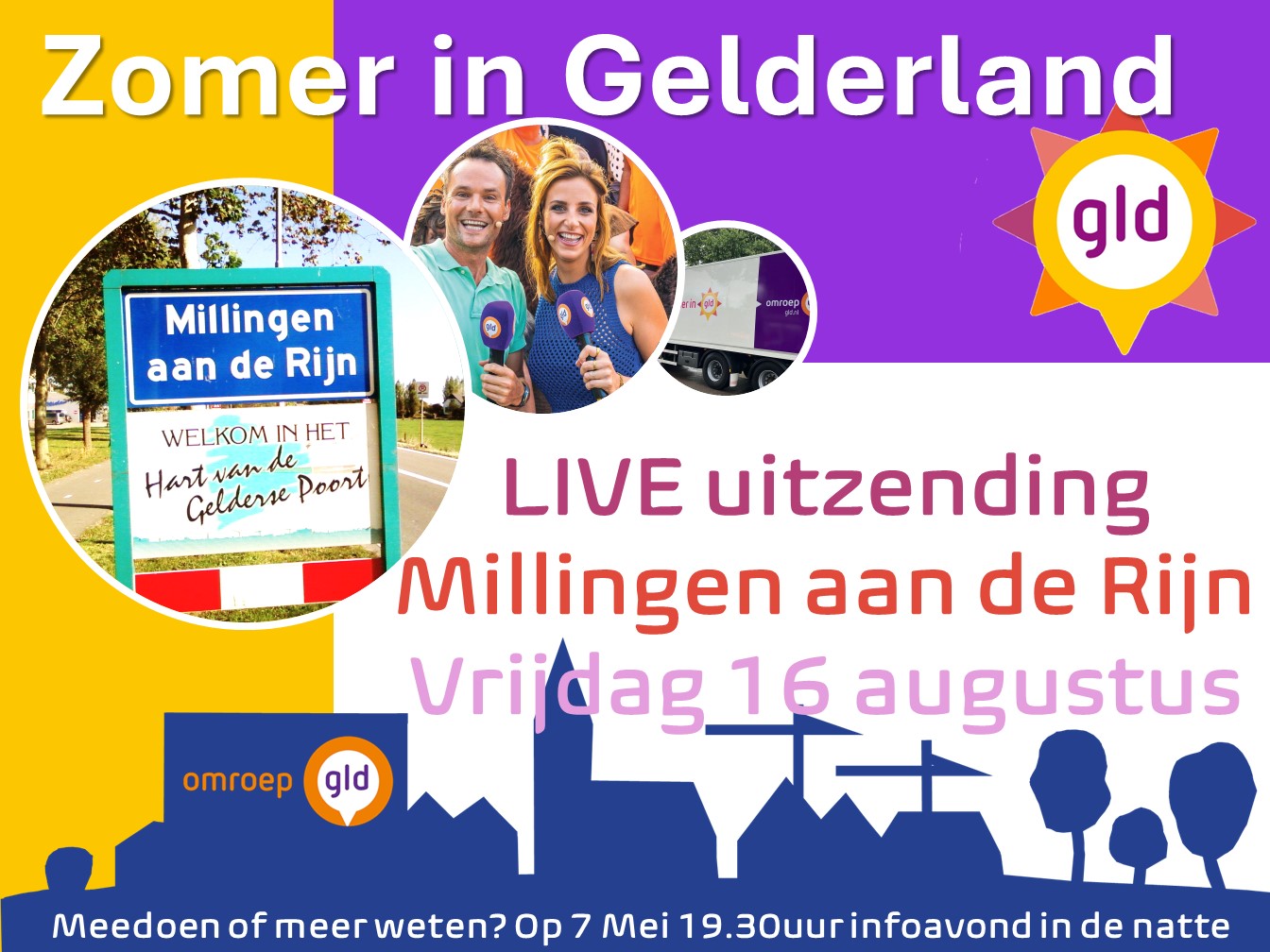 Samen ons mooie dorp goed op de kaart zetten en geld verdienen voor het goede doel. Kom kijken vanaf de tribune naar de kennisquiz, een spectaculaire stormbaan, de bouwopdracht en de parade van alles wat Millingen zo mooi en trots maakt.